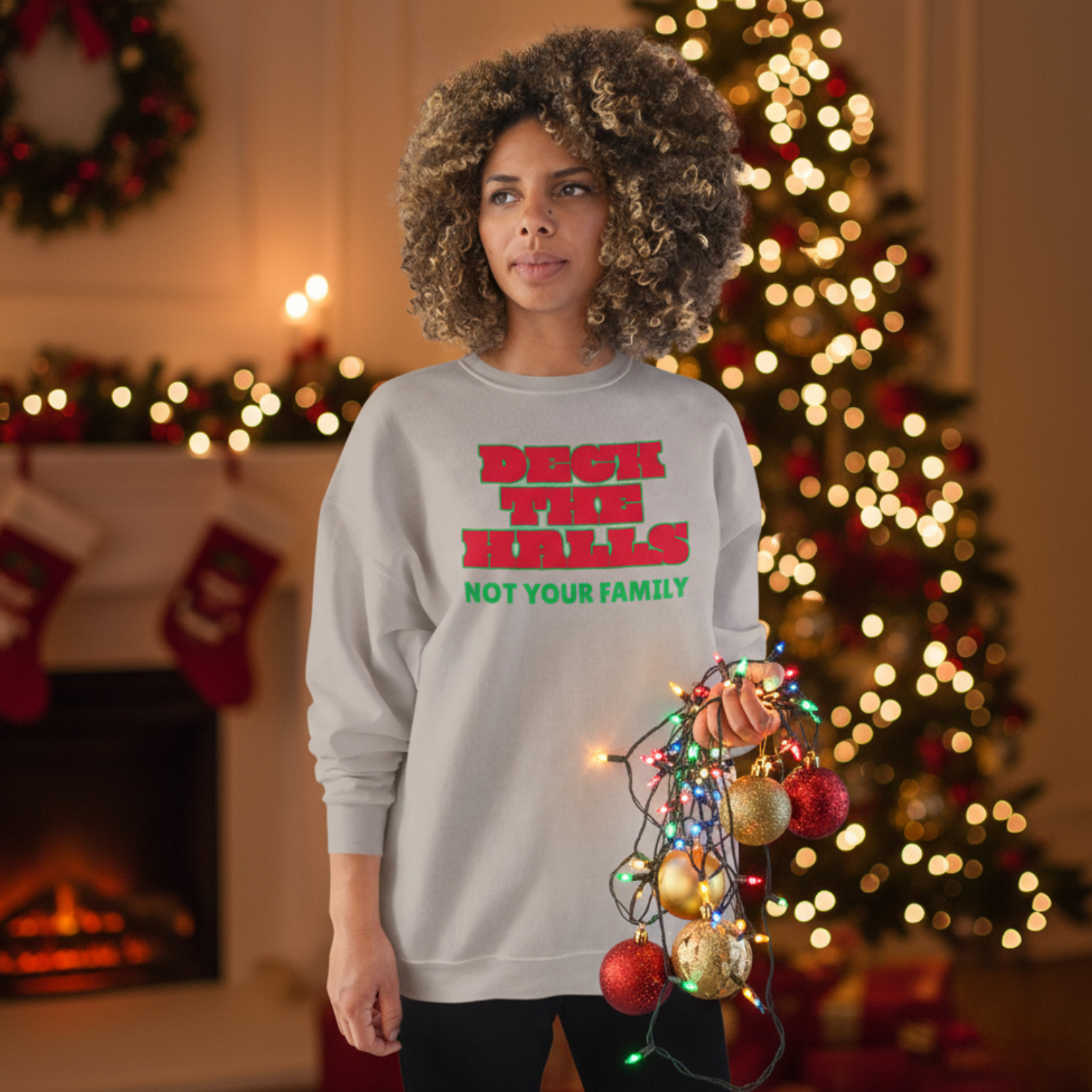 Crewneck Sweatshirt — "Deck the Halls, Not Your Family" Holiday Sweatshirt