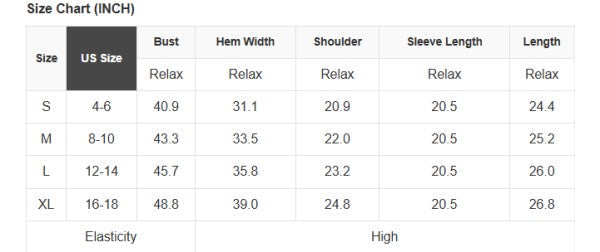 Size Info: See size chart for approximate measurements