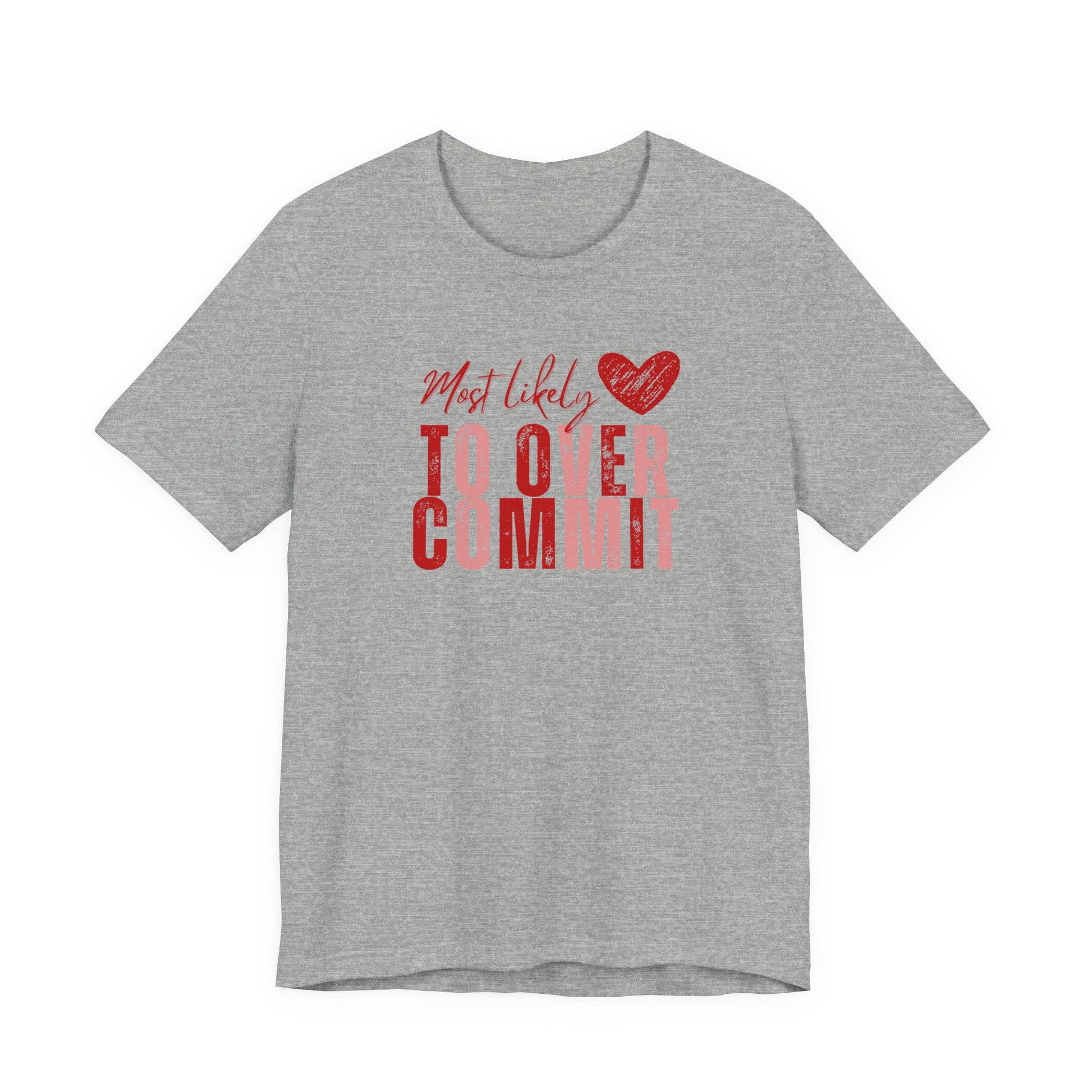 T‑Shirt — "Most Likely to Overcommit" Heart Graphic Tee